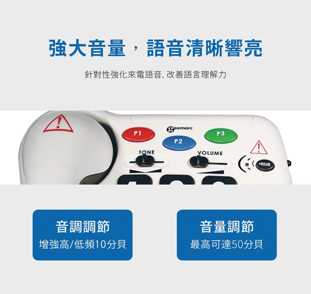 擴大電話聽筒裡對方的聲音達50分貝(型號AMP50)